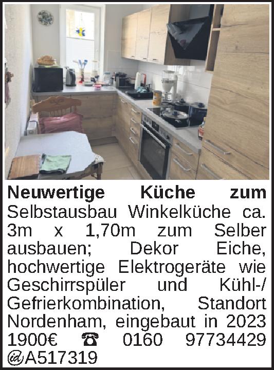 Anzeigentitel: Neuwertige Küche zum Selbstausbau
