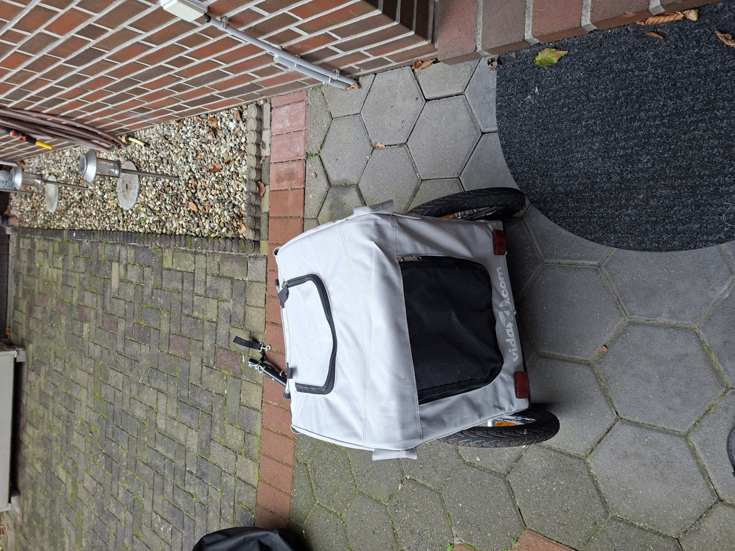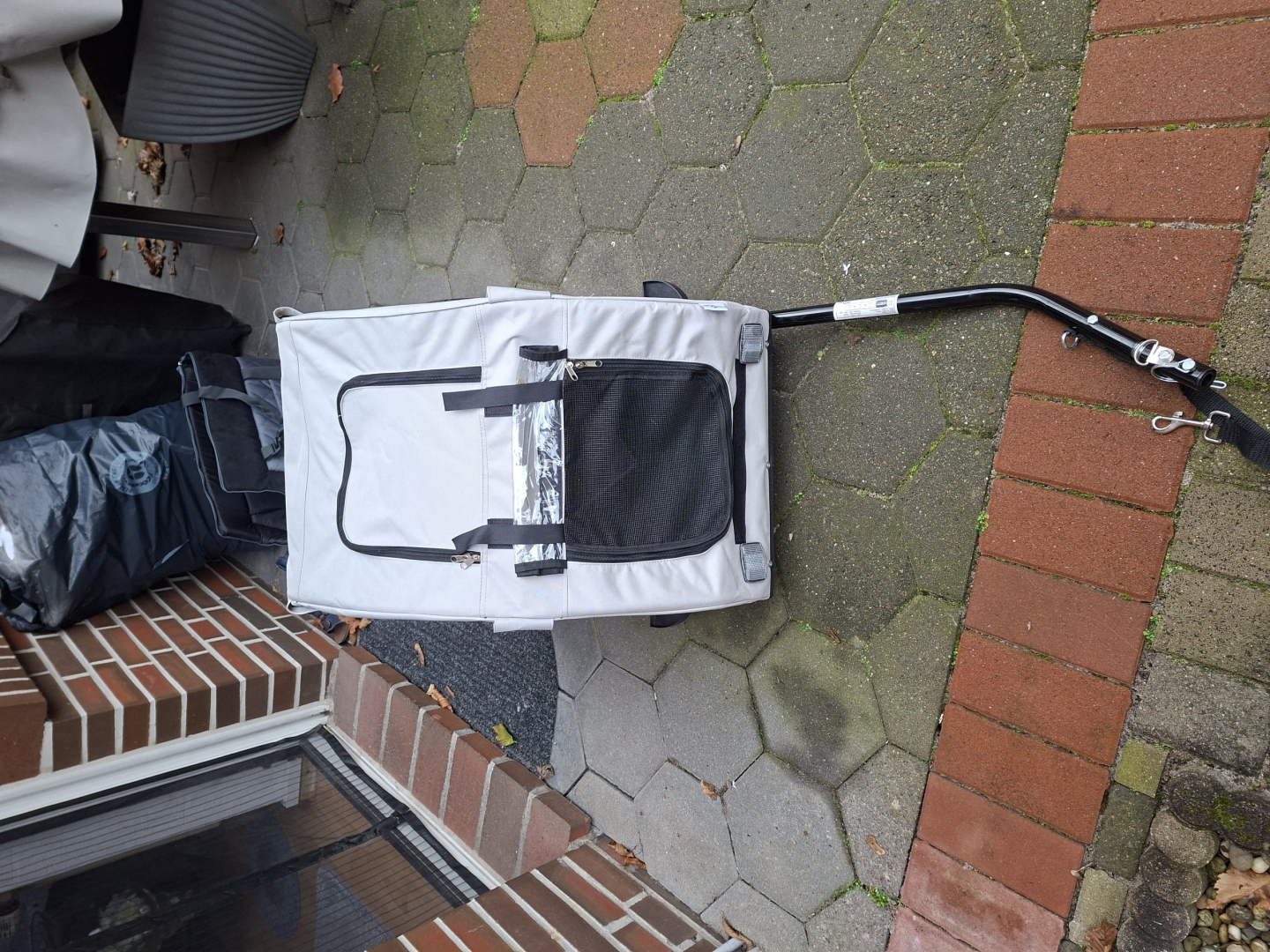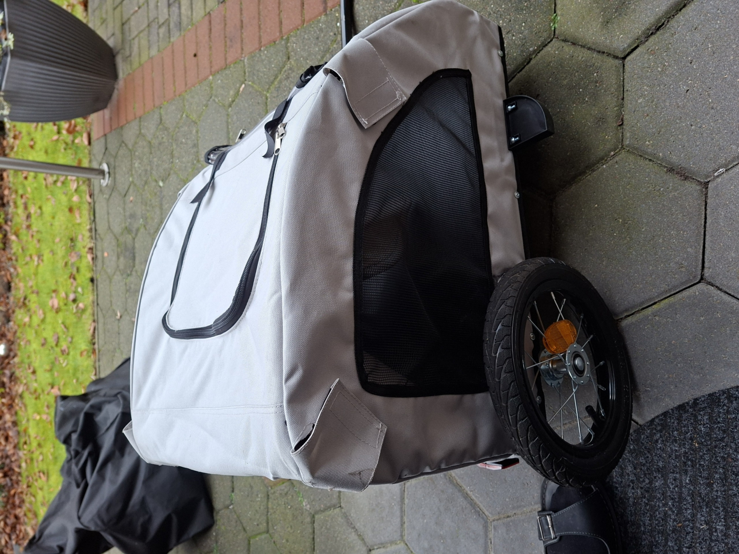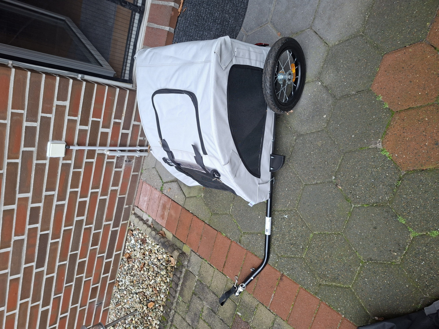 Hundeanhänger für kleinen Hund bis 30 kg 1 mal benutzt da unser Hund leider verstarb.Kontakt