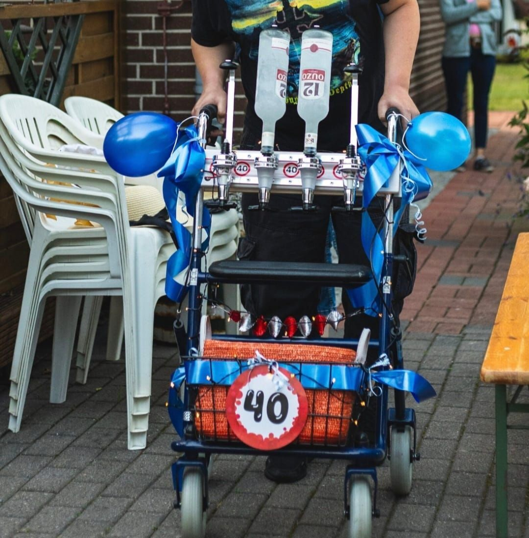 mit 4 Fl. Getränkeportionierer für runde Geburtstage oder Junggesellenabschiede ohne Deko.