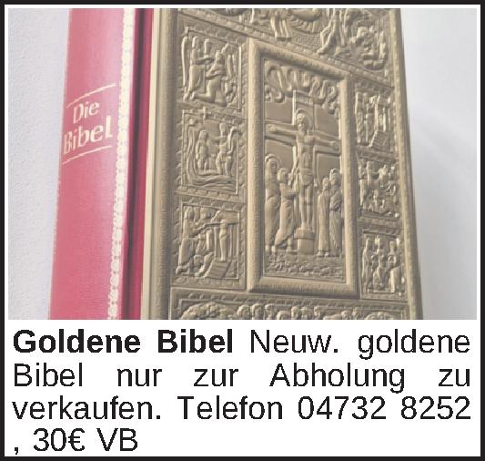 Neuw. goldene Bibel nur zur Abholung zu verkaufen.Telefon 04732 8252