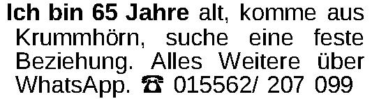 Ich bin 65 Jahre alt, komme aus Krummhörn, suche eine feste Beziehung. Alles Weitere über WhatsApp. ‡ 015562/ 207 099Kontakt