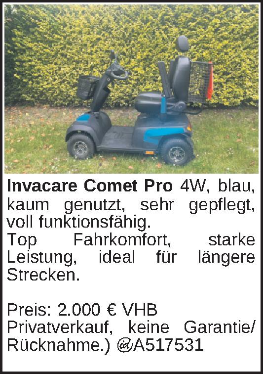 Invacare Comet Pro 4W, blau, kaum genutzt, sehr gepflegt, voll funktionsfähig.