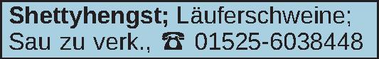 Shettyhengst; Läuferschweine; Sau zu verk., ‡ 01525-6038448Kontakt