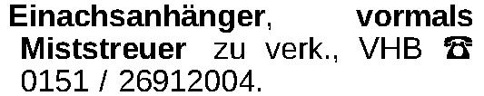Einachsanhänger, vormals Miststreuer zu verk., VHB 0151 / 26912004.