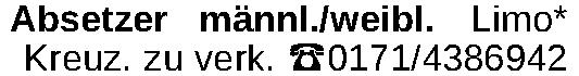Absetzer männl./weibl. Limo* Kreuz. zu verk. ‡0171/4386942Kontakt