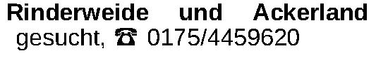 Rinderweide und Ackerland gesucht, 0175/4459620