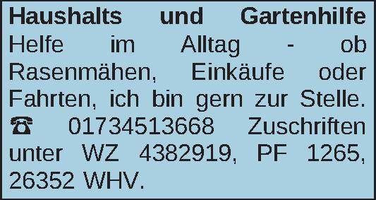 Anzeigentitel: Haushalts und Gartenhilfe