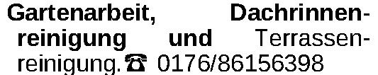 Gartenarbeit, Dachrinnenreinigung und Terrassenreinigung.‡ 0176/86156398Kontakt