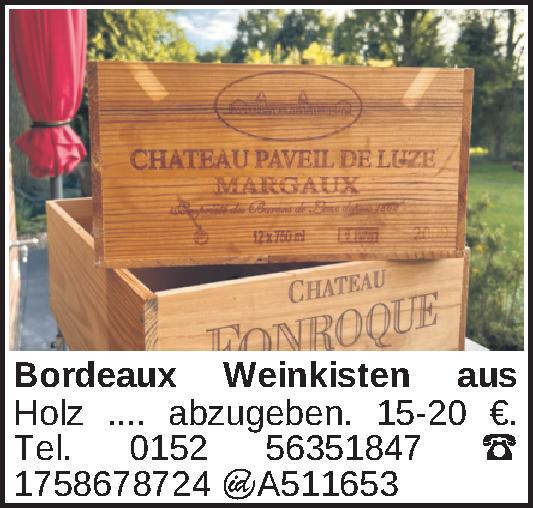 Anzeigentitel: Bordeaux Weinkisten aus Holz
