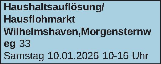 Wilhelmshaven,Morgensternweg 33Samstag 10.01.2026 10-16 Uhr