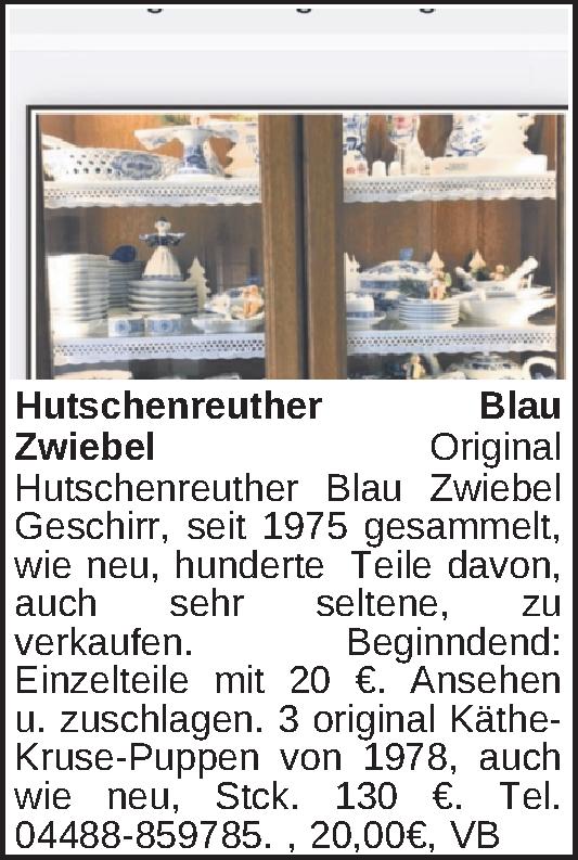 Original Hutschenreuther Blau Zwiebel Geschirr,seit 1975 gesammelt, wie neu, hunderte Teile davon, auch sehr seltene, zu verkaufen. Beginndend: Einzelteile mit 20 €.