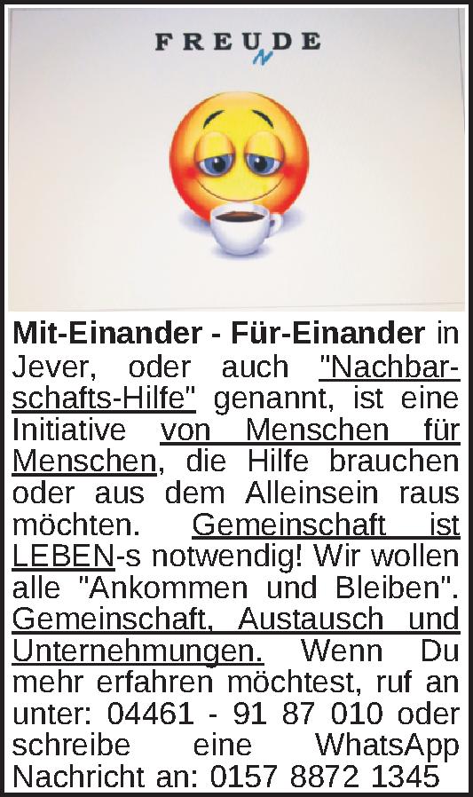 Anzeigentitel: Miteinander – Füreinander in Jever