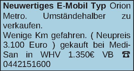E-Mobil Typ Orion Metro. Umständehalber zu verkaufen.