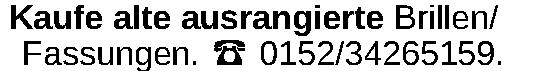 Kaufe alte ausrangierte Brillen/ Fassungen. ‡ 0152/34265159.Kontakt