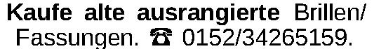 Kaufe alte ausrangierte Brillen/ Fassungen. ‡ 0152/34265159.Kontakt