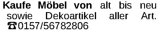 Kaufe Möbel von alt bis neu sowie Dekoartikel aller Art. ‡0157/56782806Kontakt