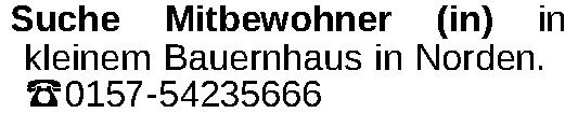 Suche Mitbewohner (in) in kleinem Bauernhaus in Norden. ‡0157-54235666Kontakt