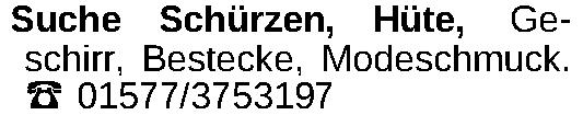 Suche Schürzen, Hüte, Geschirr, Bestecke, Modeschmuck. ‡ 01577/3753197Kontakt