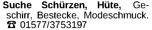 Suche Schürzen, Hüte, Geschirr, Bestecke, Modeschmuck. 01577/3753197