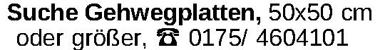 Suche Gehwegplatten, 50x50 cm oder größer, ‡ 0175/ 4604101Kontakt