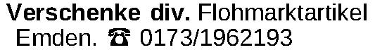 Verschenke div. Flohmarktartikel Emden. ‡ 0173/1962193Kontakt