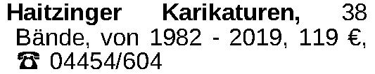 Haitzinger Karikaturen, 38 Bände, von 1982 - 2019, 119 €, ‡ 04454/604Kontakt