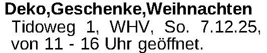Deko,Geschenke,Weihnachten Tidoweg 1, WHV, So. 7.12.25, von 11 - 16 Uhr geöffnet.Kontakt