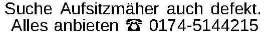 Suche Aufsitzmäher auch defekt. Alles anbieten ‡ 0174-5144215Kontakt
