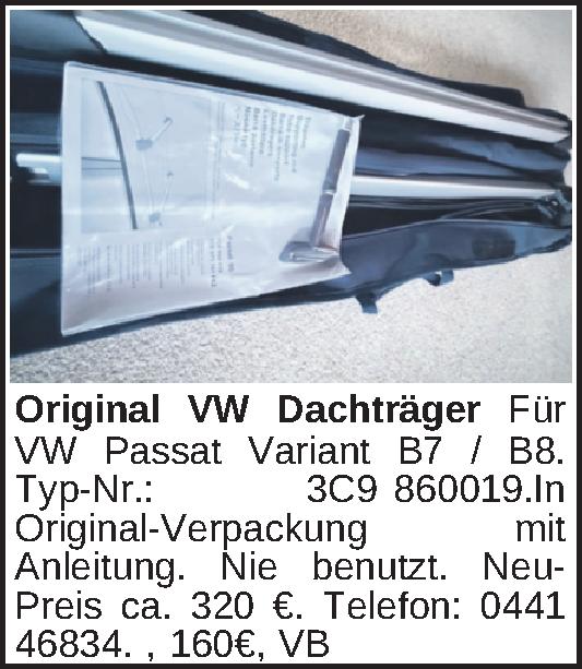 Für VW Passat Variant B7 / B8. Typ-Nr.: 3C9 860019.In Original-Verpackung mit Anleitung. Nie benutzt. Neu-Preis ca. 320 €.Telefon: 0441 46834.