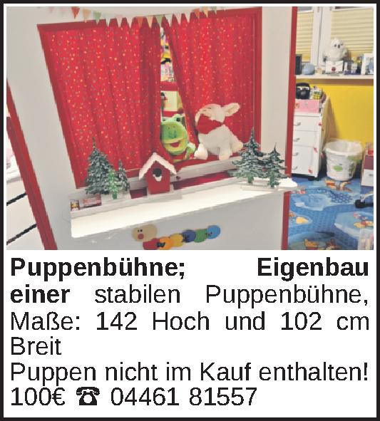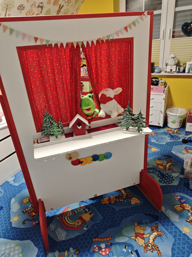 einer stabilen Puppenbühne, Maße: 142 Hoch und 102 cm BreitPuppen nicht im Kauf enthalten!