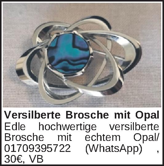 Edle hochwertige versilberte Brosche mit echtem Opal/01709395722 (WhatsApp)