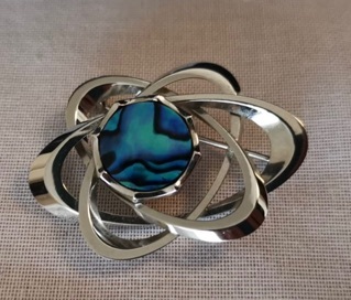 Anzeigentitel: Versilberte Brosche mit Opal