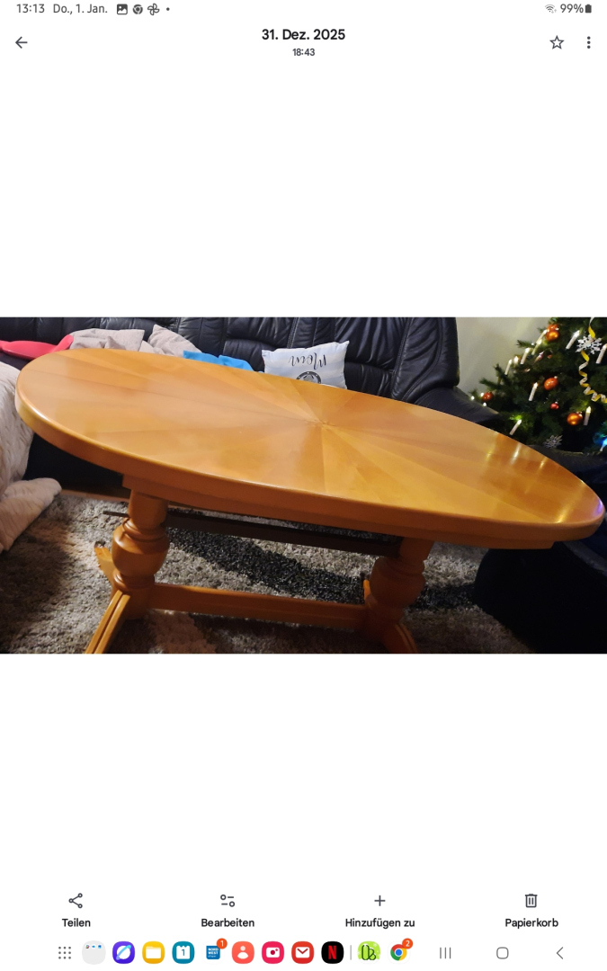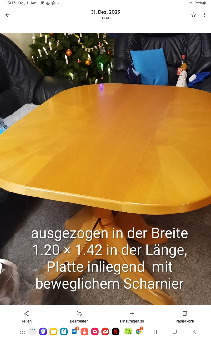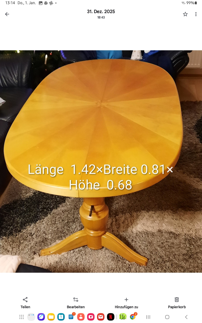 Wohnzimmertisch buchefarben in Breite zum Ausziehen L 1.42×B 0.81× H 0.68-1.42 × 1.20 × 0.68 günstig abzugeben