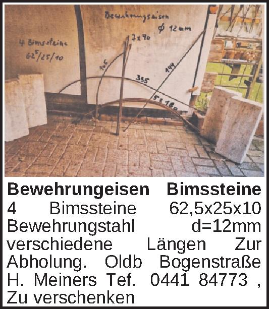 Anzeigentitel: Bewehrungeisen Bimssteine