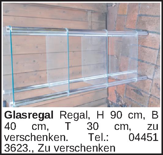 Regal, H 90 cm, B 40 cm, T 30 cm, zu verschenken. Tel.: 04451 3623.Kontakt