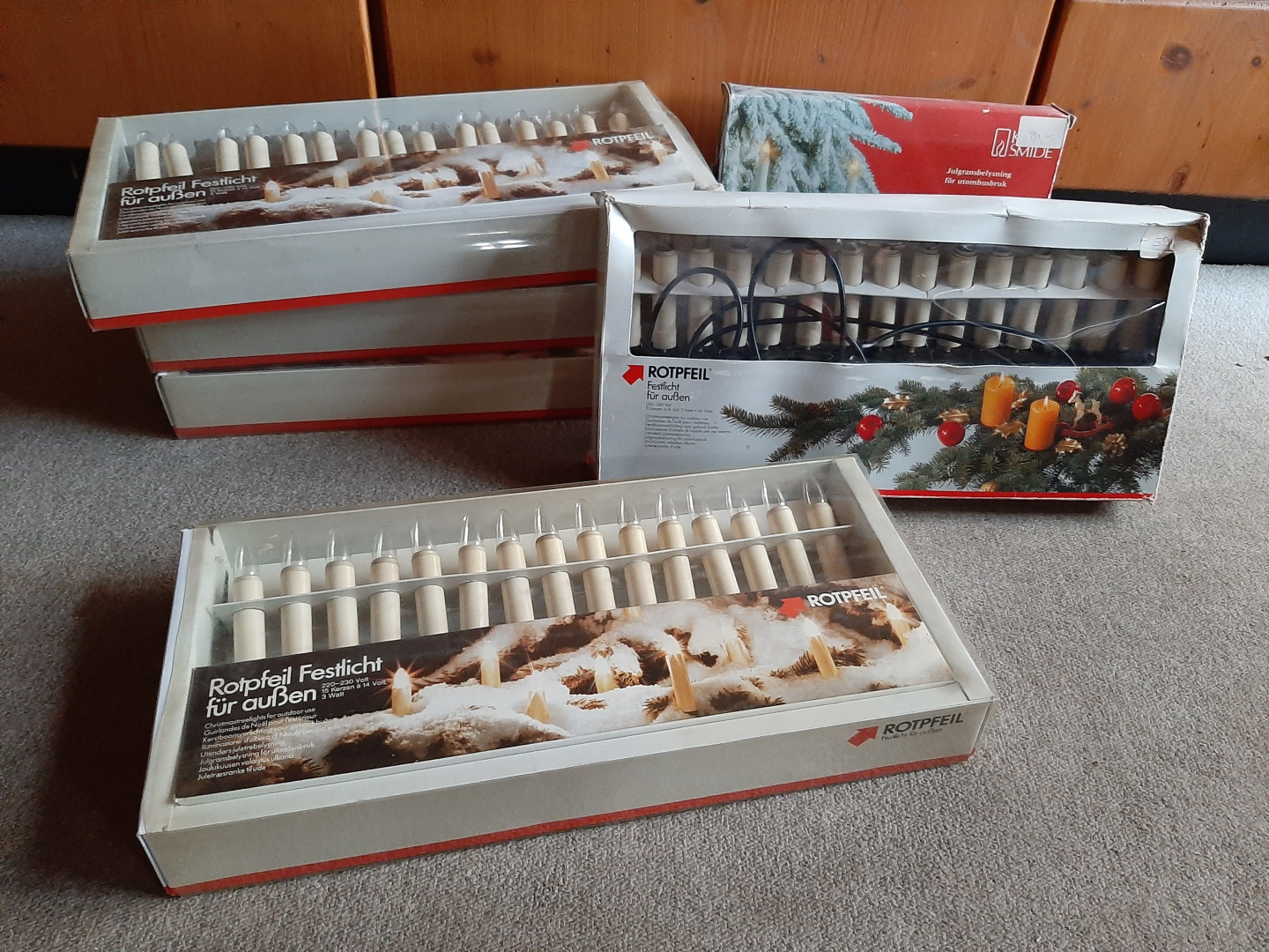 für außen, insgesamt 5 Pakete mit je 15 Kerzen, nur Abholung, Tel: 04408 7328Kontakt