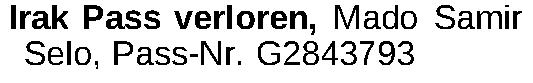 Irak Pass verloren, Mado Samir Selo, Pass-Nr. G2843793Kontakt