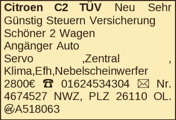 Anzeige vom 28.4.2026 in der Rubrik "Citroen"