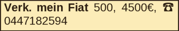 Verk. mein Fiat 500, 4500€, ‡ 0447182594Kontakt