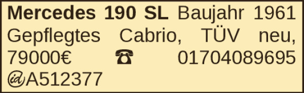 Mercedes 190 SL Baujahr 1961 Gepflegtes Cabrio, TÜV neu, 79000€ 01704089695 ¬A512377