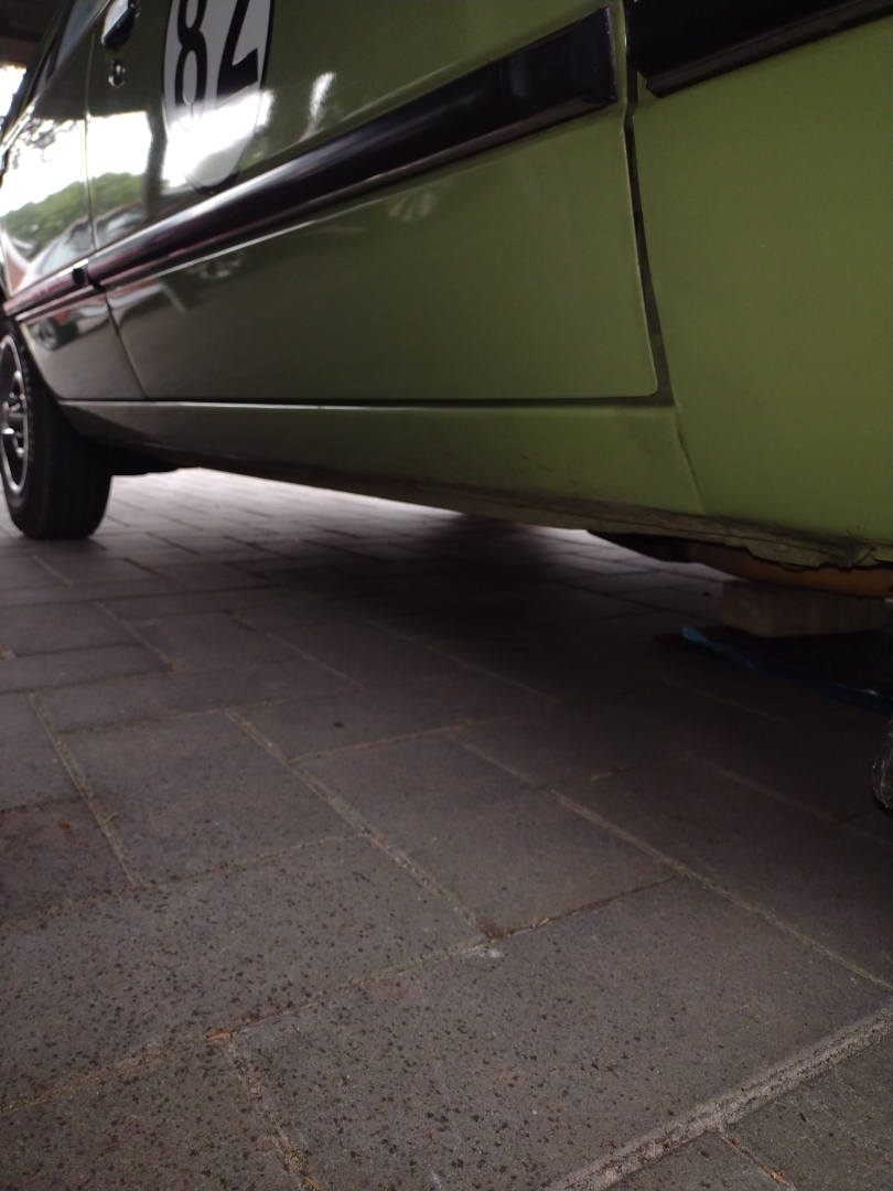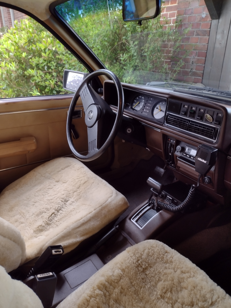 Mit ein paar netten Aufklebern, den schwarzen Felgen und der matten Haube zeitgenössisch "getuned" im Kontrast zur spießigen Innenausstattung mit funktionierenden CB - Funk.