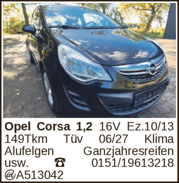 Opel Corsa 1,2 16V Ez.10/13 149Tkm Tüv 06/27 Klima Alufelgen Ganzjahresreifen usw. 0151/19613218 ¬A513042