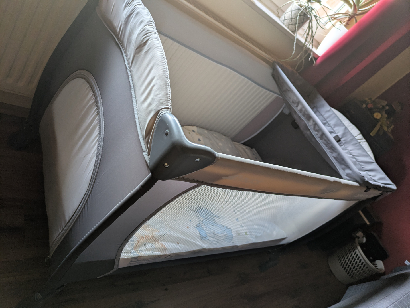 Sehr gut erhaltenes, kaum gebrauchtes zusammenklappbares Kinderreisebett 1,25 x 0,65 mit Wickelauflage, Matratze und BettwäscheKontakt