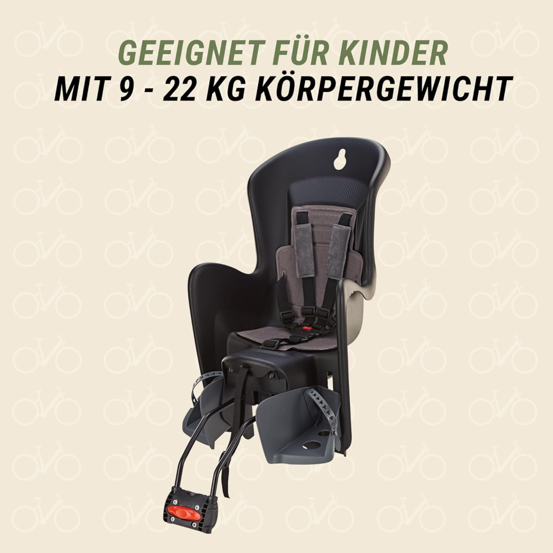 Entspannte Fahrrad- und E-Biketouren mit Ihren Kleinen im Kindersitz. Besonders praktisch: Der Sitz wächst mit. Die Sitzschale ist ausgelegt für Mädchen und Jungen mit einem Körpergewicht zwischen 9 bis 22 kg. Die Fußrasten lassen sich je nach Körpergröße verstellen, ebenso wie die Rückenlehne. Sollte Ihr Kind müde werden und ein Nickerchen machen wollen, neigen Sie die Rückenlehne einfach um 20° für eine bequemere Sitzposition.