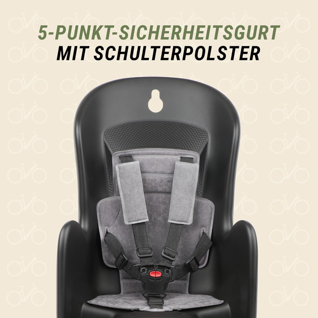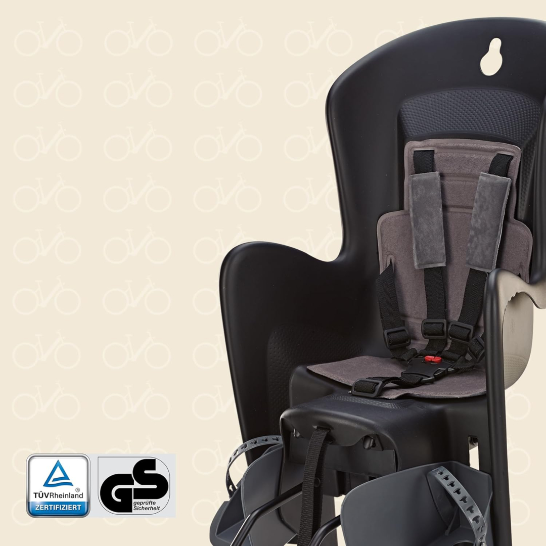 Safety First für Kinder im Bilby RS Kindersitz - verstellbarer 5-Punkt-Gurt mit Polsterung, Fußrasten mit Sicherheitsschnallen und Speichenschutz