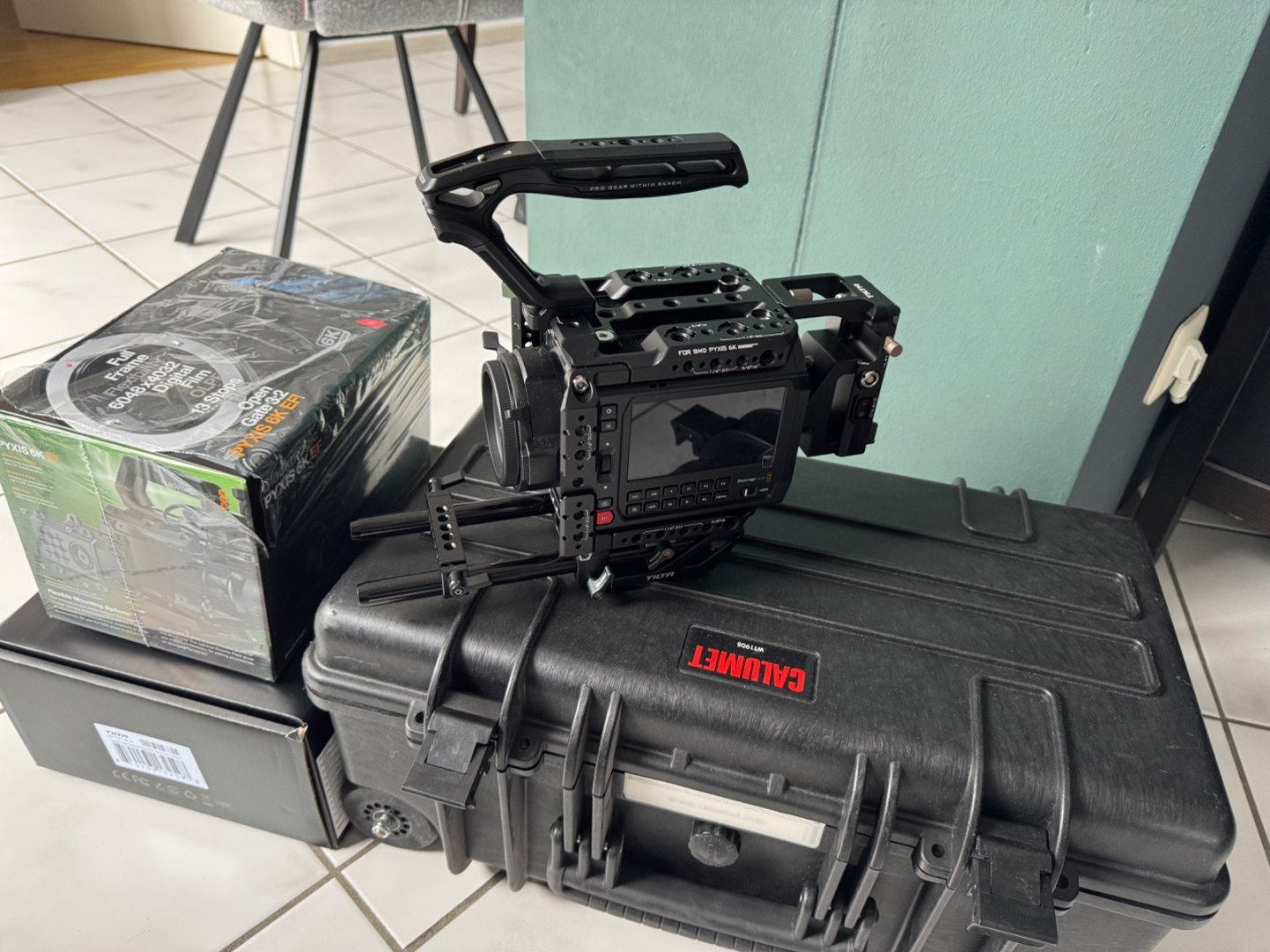 Sie können eine absolut neuwertige (Schutzfolie noch auf Bildschirm), nur 1 Stunde benutze BLACKMAGIC Cinecamera PYXIS 6K mit Canon EF-Objektivanschluß, erwerben. Mit dabei ist ein Tilta Full Camera Cage Pro Kit V Mount ES-T21-B-V für Blackmagic PYXIS.Zusätzlich wird eine Transportbox geliefert, um alles stets in einem sicheren Zustand verwahrt zu wissen.