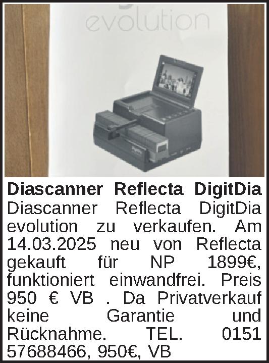 Diascanner Reflecta DigitDia evolution zu verkaufen. Am 14.03.2025 neu von Reflecta gekauft für NP 1899€,