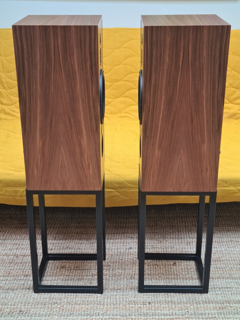 Suesskind Audio, Joachim Gerhard M44 SL Studiomonitore. Monitorlautsprecher mit 44 Liter Gehäusevolumen. Nussbaumfurnier.Extrem neutrales Klangbild für stundenlanges Hören ohne Ermüdung.