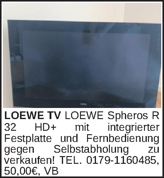 LOEWE Spheros R 32 HD+ mit integrierter Festplatte und Fernbedienung gegen Selbstabholung zu verkaufen!