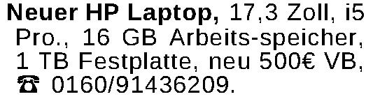 Neuer HP Laptop, 17,3 Zoll, i5 Pro., 16 GB Arbeits-speicher, 1 TB Festplatte, neu 500€ VB, ‡ 0160/91436209.Kontakt